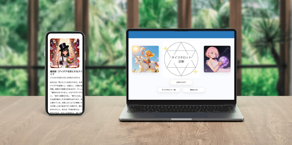 占いサイトを作ってみたいという思いから、HTML/CSSを使い、オリジナル占いサイトを制作しました。デザインから画像生成も行い、自分が表現したいサイトに近づけることができました。詳細は投稿ページより掲載しています。