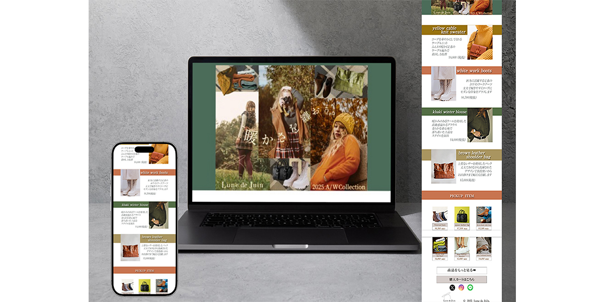 アパレル・ECサイトのLP・サムネイルを作成しました。詳細はこちら