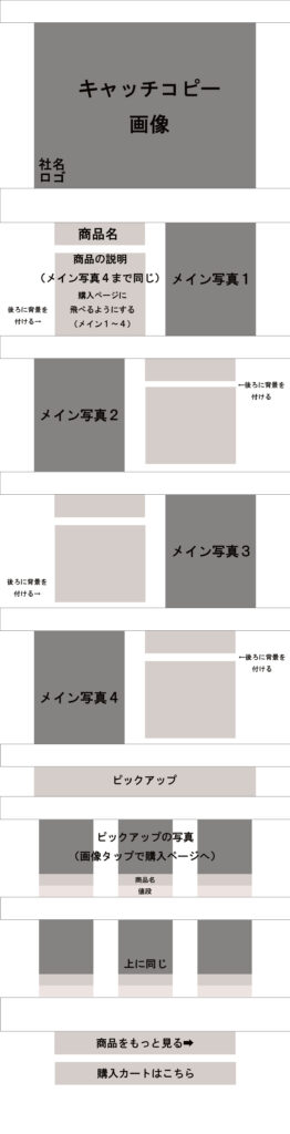 ・ピックアップの写真には購入に至りやすいように整列させてまとめ、商品ページからも購入に飛べるようにしたい。