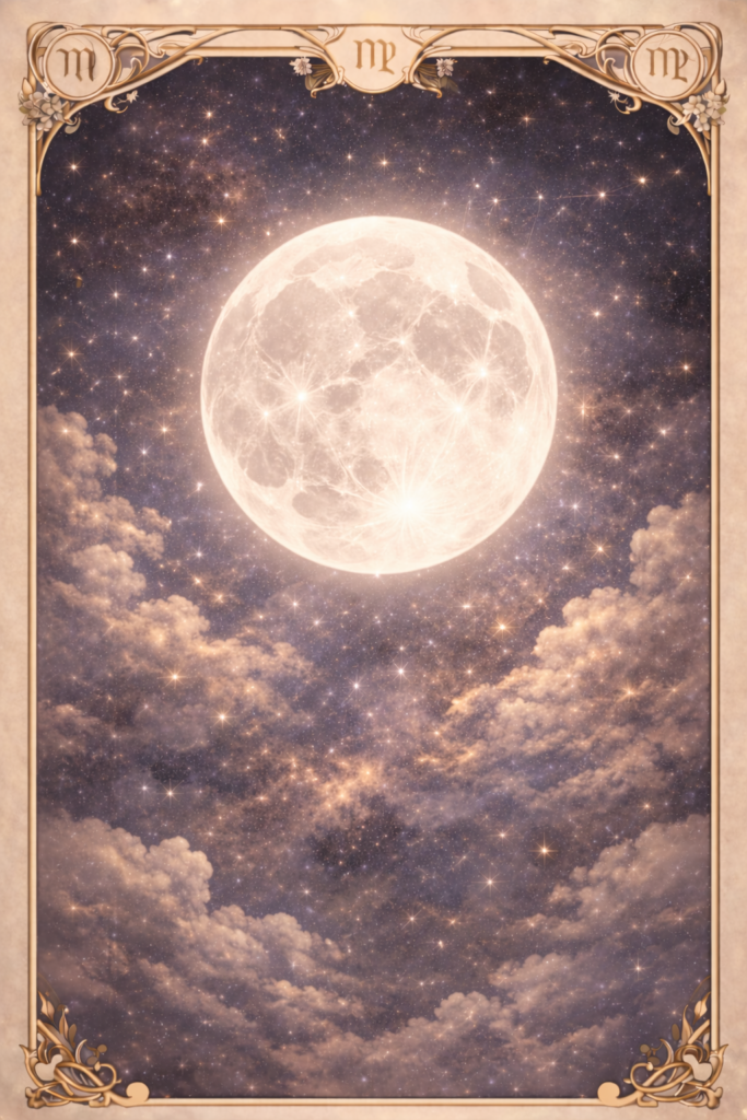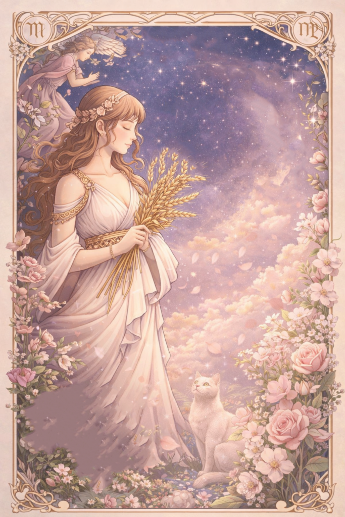 乙女座を象徴に、女神の女性、星座、月、タロットカードなど動画の内容に合うようにデザインしました。