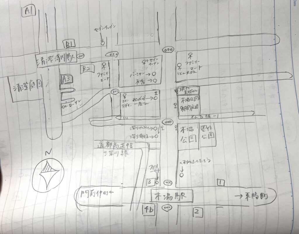 ・実際の地図で書いてしまうと距離が長すぎてしまうので、どこを省略するか迷った
