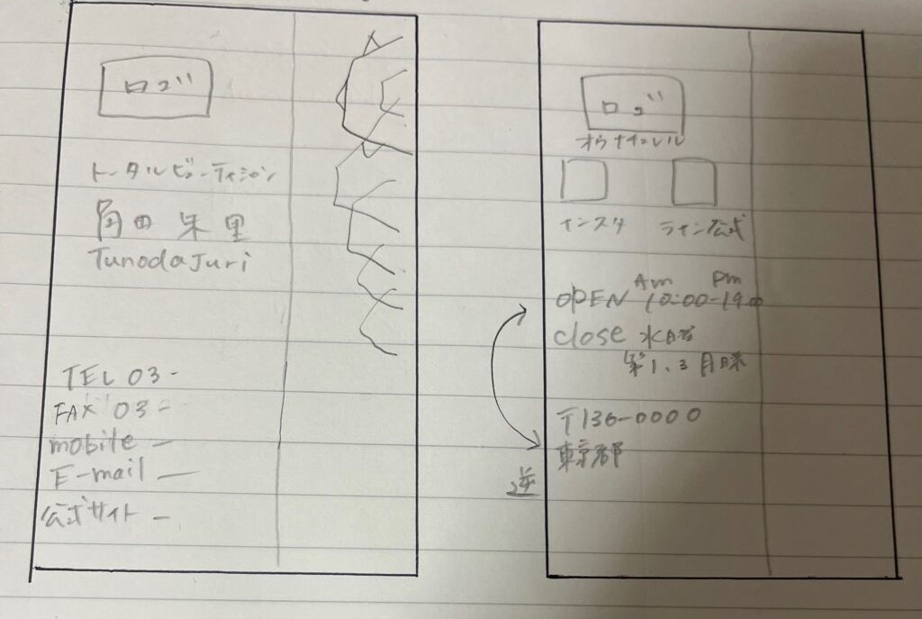 ビジネスなので、公共の場でも使えるお硬めのデザインと必要な情報を盛り込んだ。