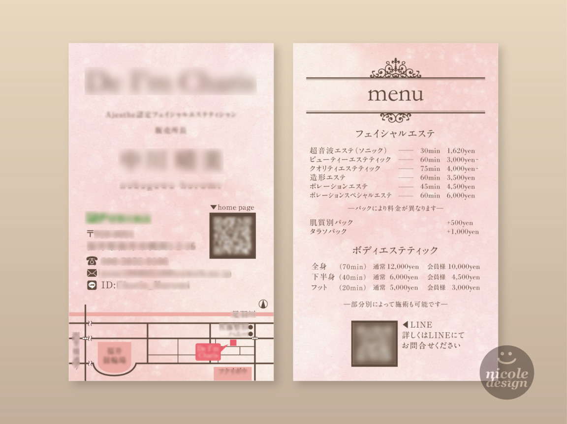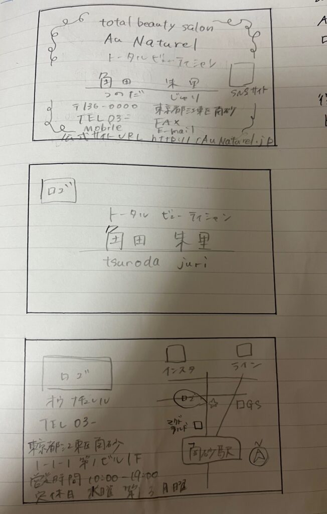 前の授業でエステティシャンのロゴを作ったので、ビジネスで使える名刺を作成した。