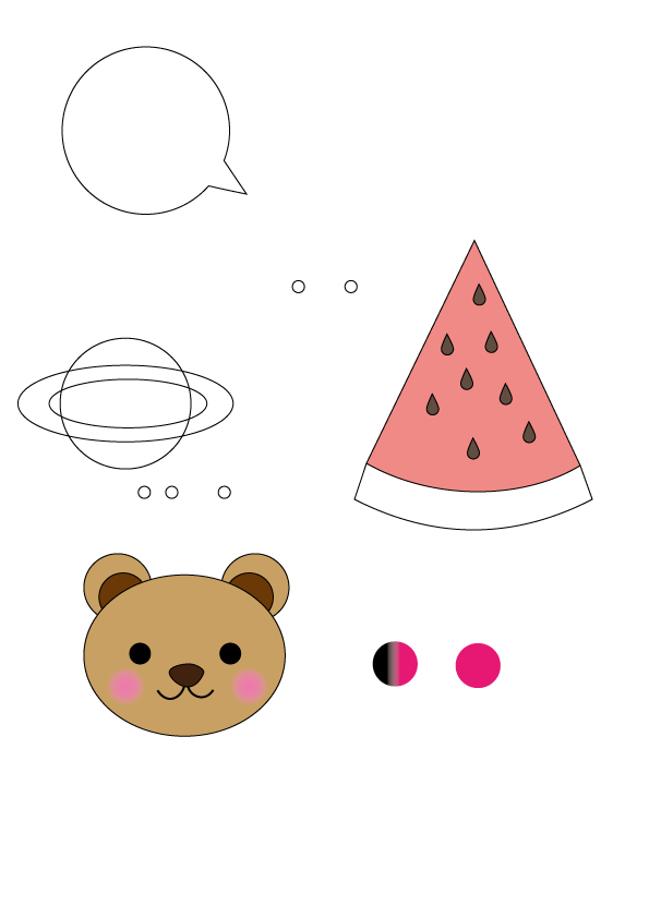 作品 初めてのイラストレータ作品 初めてイラストレータで作りました(制作時間1時間)吹き出しオフファインダーを使用すいか多角形ツール円形ツールアンカーポイントツールオブジェクト選択ツールを使用したクマグラデーションツールを使用したなじ... 作品